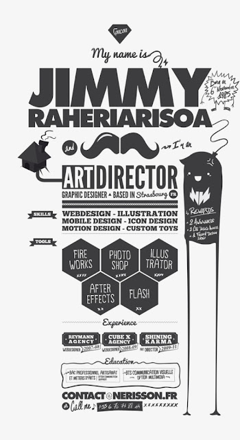 To inspire you to do the same I have collected a few to show with a whole host more to be found on my dedicated Pinterest board for creative CVs - you can check that out here.