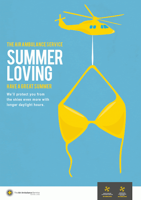 The brief itself was to design a postcard for the TAAS promoting the benefits of longer hours of sunlight in the summer months in regards to the air ambulance operating longer. I decided to go for an illustrative style as it was such a departure from the existing style of TAAS and I could really put my stamp on it. The concept is quite humorous and adds an element of fun, which moves away from the more shocking tactics of some charities.
